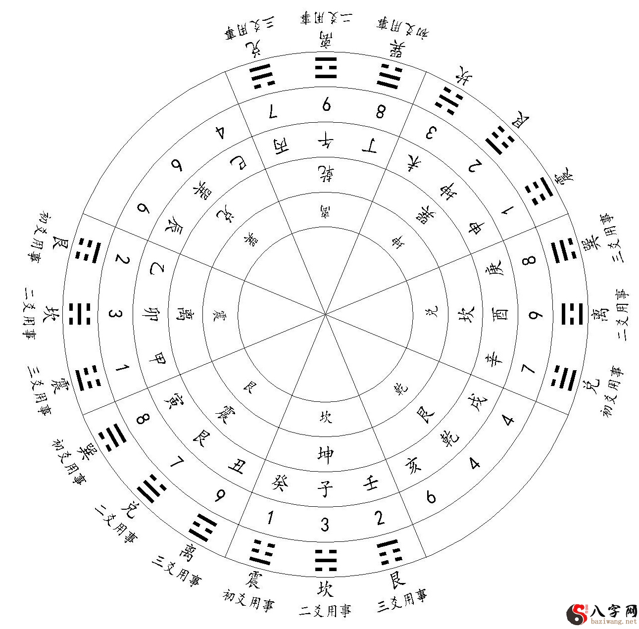 甲癸申一白贪狠星 坤壬乙二黑巨门星
